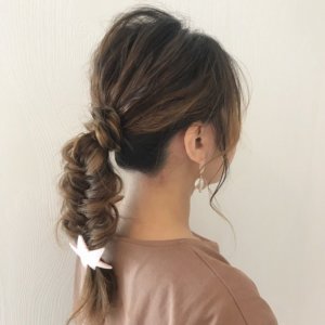 マロンブラウンカラーに毛先のみベージュハイライトグラデーション